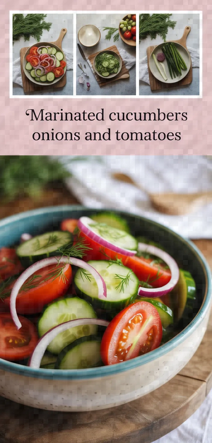 i grabbed some thinly sliced cucumbers, tomatoes, and red onion, drizzled them with a mix of olive oil, red wine vinegar, and a hint of garlic, then let all the flavors hang out in the fridge for a bit, and honestly, this salad totally became my chill, fresh go-to snack.